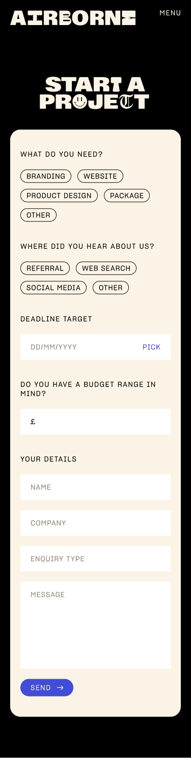 Crafted the complete UI for Airborne Studio’s website with a fast turnaround, implementing their provided UX and brand. Designed the desktop and mobile interfaces, adding animation concepts, dropdowns, and hover states to elevate the user experience.