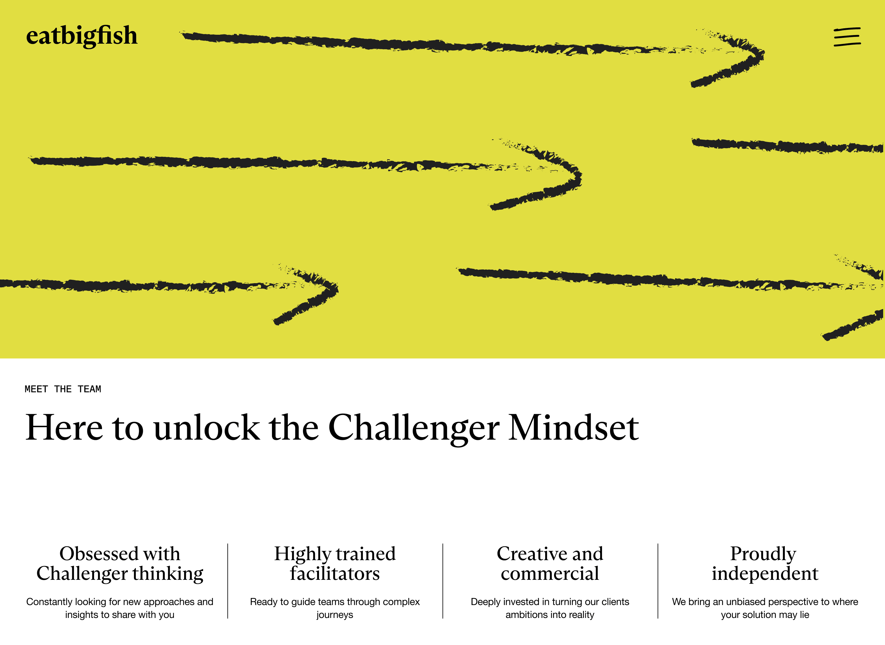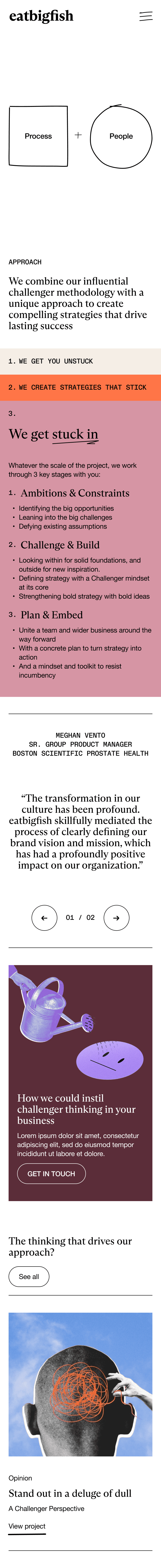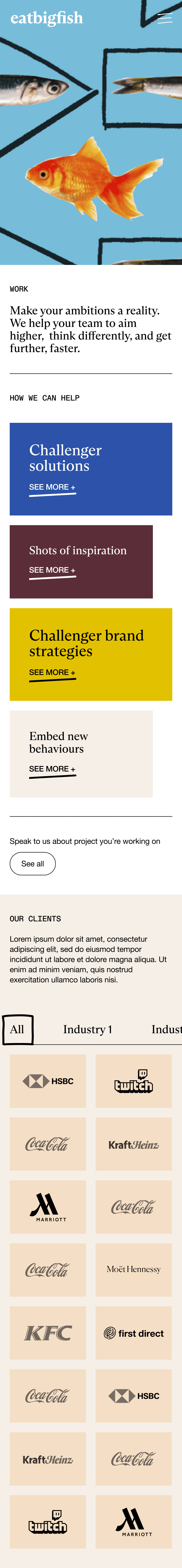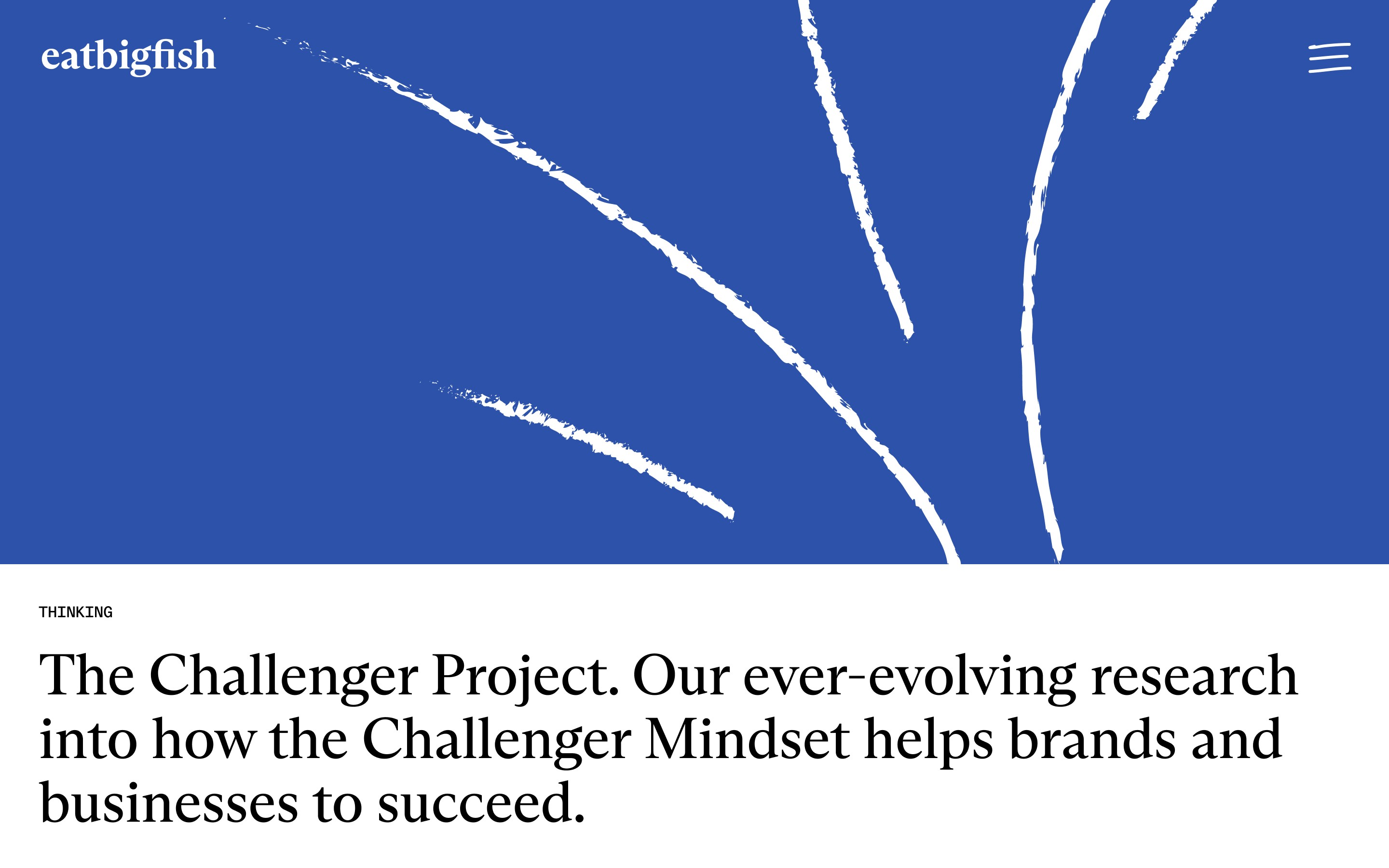 Designed the end-to-end UX and UI for eatbigfish’s website, translating their positioning as “the strategic consultancy that helps ambitious Challengers to grow” into a clear, confident narrative and a simple IA. The experience is built to quickly communicate the problem space (misalignment and lack of strategic direction) and their “Challenger Mindset” solution, while also supporting a scalable publishing hub for their ongoing research and content (“Latest thinking” / The Challenger Project).