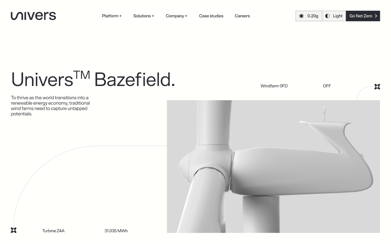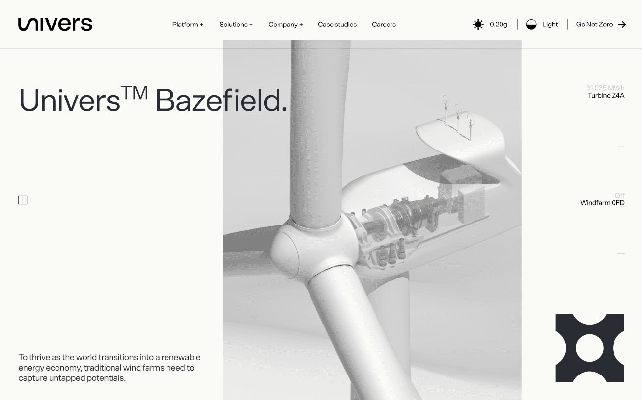 Univers is the world's most comprehensive decarbonisation system, providing solutions for IoT, renewables, energy storage, carbon management, and electric mobility to help companies and countries reduce carbon emissions. For this project, I was brought in to collaborate with Pentagram on redesigning Univers' website. While the final website was a team effort, I've chosen to showcase my personal concept work instead. The Univers project allowed me to flex my conceptual skills by envisioning fresh ways for users to understand and interact with Univers' cutting-edge decarbonisation data and technology through thoughtful design. Exploring these blue-sky ideas let me push my abilities in translating intricate systems into compelling digital experiences.